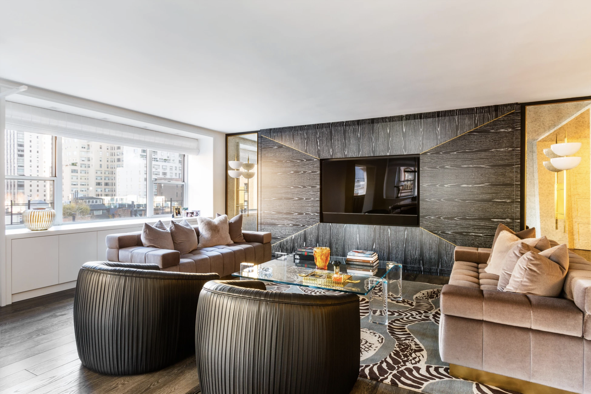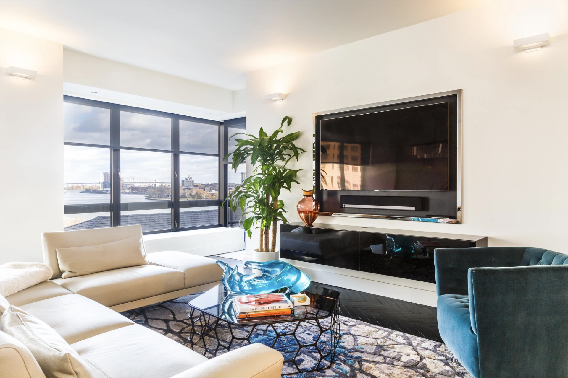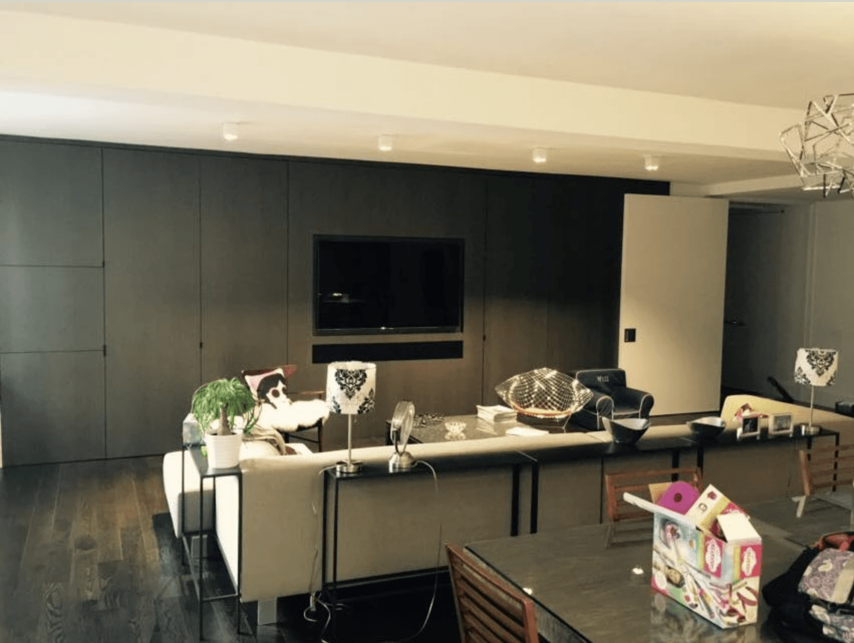 Sonos sound bar and TV in recess. Automated shades. Full gut renovation with A/V, automated smart lights, automated motorized shades